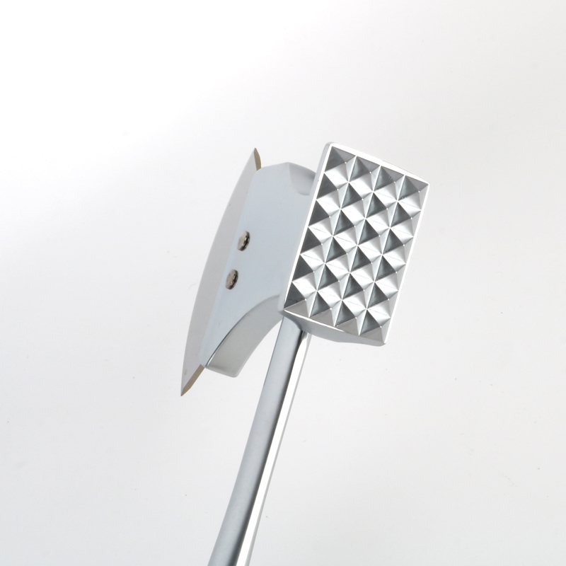 Lo strumento tutto in uno, che funge sia da batticarne di nuova concezione in lega di zinco che da tagliapizza, ha una lunghezza di 25 cm. La parte anteriore è divisa in due superfici funzionali: una per il batticarne e l'altra per il tagliapizza. Il manico è progettato con una forma ad arco ottimizzata e la parte del manico vicino all'impugnatura è più spessa per consentire agli adulti di tenerla saldamente con una mano. Sulla coda del manico è inoltre aggiunto un cuscino in plastica ABS per ridurre il dolore al palmo e aumentare il comfort durante l'uso prolungato.