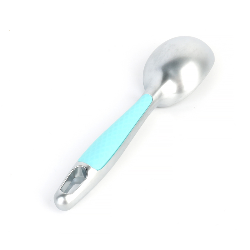 La paletta per gelato professionale in lega di zinco con impugnatura comoda, lavabile in lavastoviglie, pesa 88 grammi e misura 16,5 centimetri di lunghezza. All'estremità del manico è progettato un foro per appendere, che la rende comoda per la conservazione e l'organizzazione in qualsiasi ambiente domestico, consentendo al tempo stesso di appenderla facilmente dopo la pulizia per garantire un'asciugatura completa. Possiamo produrre questa paletta per gelato in una varietà di colori in base alle esigenze del cliente e offrire campioni gratuiti per la conferma.