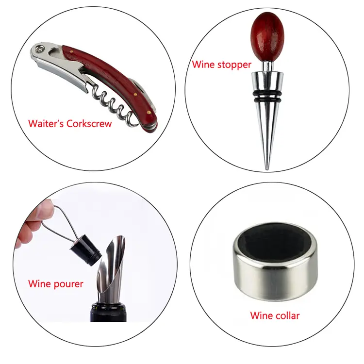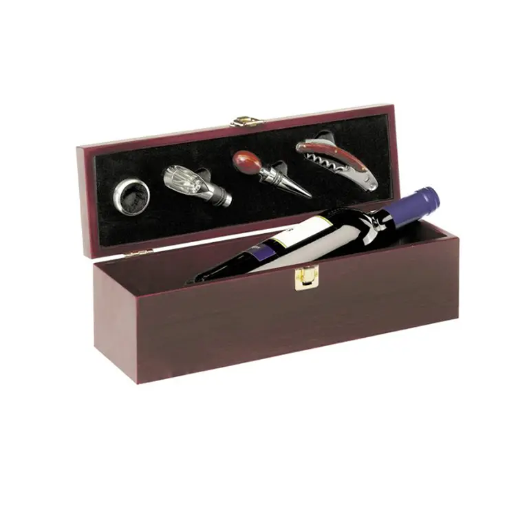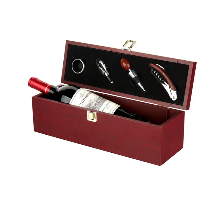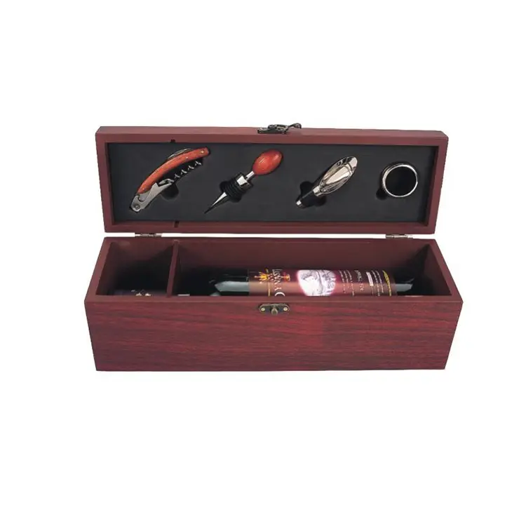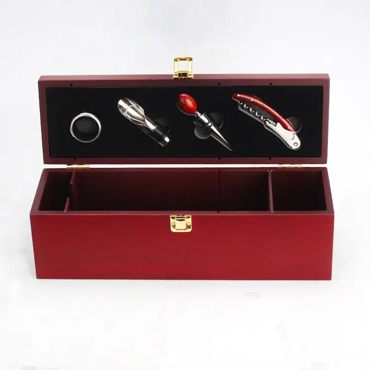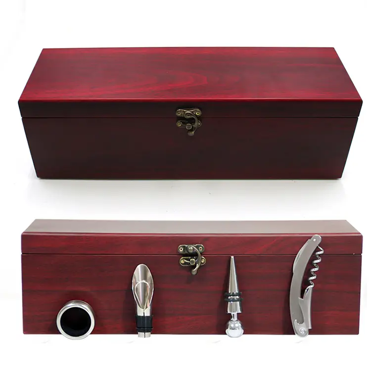 Questo è un set di vino in legno rossastro con accessori da vino da 4 pezzi. È stato progettato per i concessionari di vino che utilizzano come imballaggi per le loro vendite di vini ed è anche disponibile per i produttori di regali personalizzati da incorporare nei loro regali personalizzati premium per i clienti aziendali. La scatola di legno è prodotta da noi stessi, che è diversa dall'altra fabbrica acquistata all'esterno, abbiamo una serie completa di linee di produzione per la scatola di legno, tutte le scatole di legno sono prodotte nel nostro seminario, un controllo di qualità superiore e tempistiche di produzione precisa rispetto all'altra stessa industria. Con oltre 10 anni di esperienza di produzione dedicata, il nostro team ha sviluppato un'artigianato altamente raffinato e una vasta esperienza, garantendo standard eccezionali in ogni prodotto che creiamo.